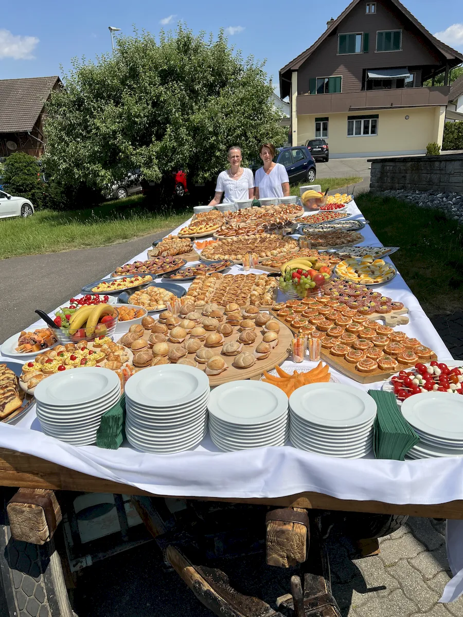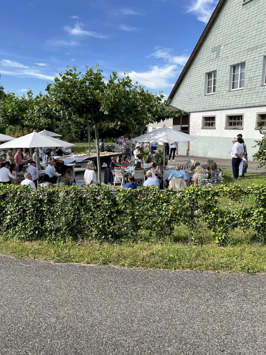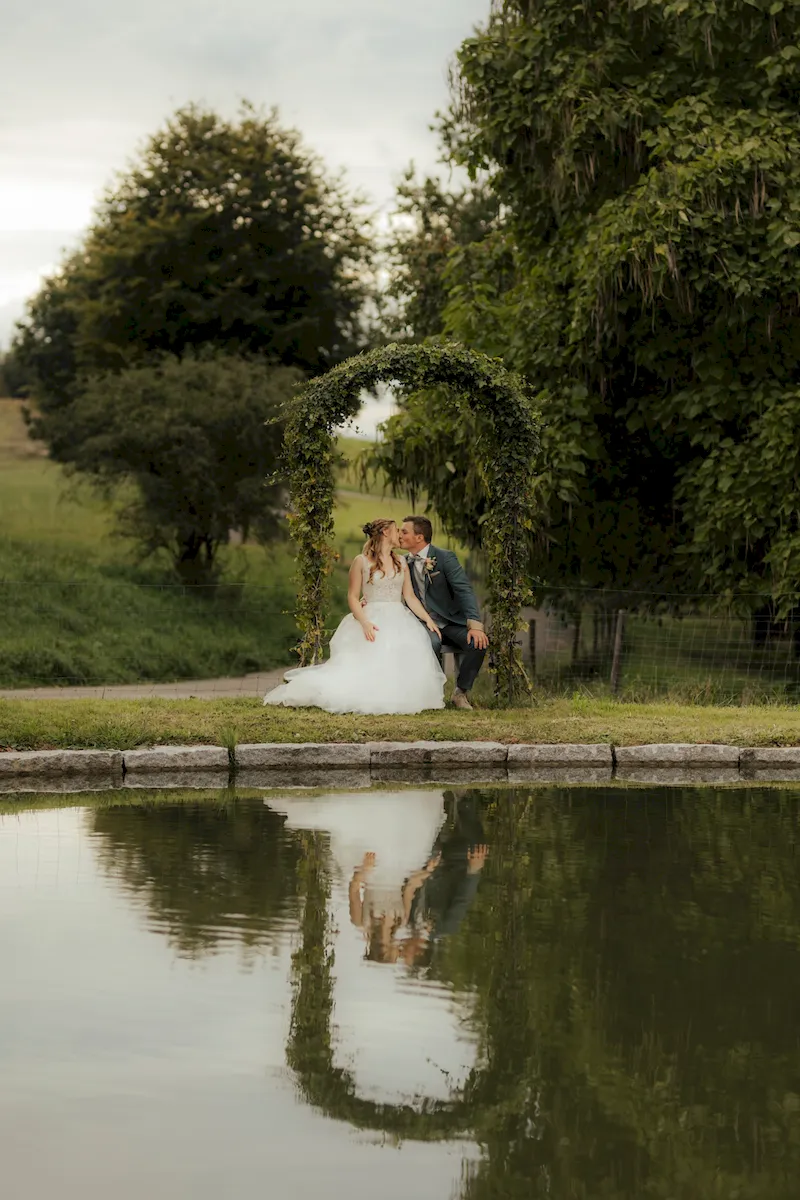 Was gibt es Schöneres als ein Apéro oder eine freie Trauung unter schattenspendenden Platanen an einem lauschigen Weiher? Gerne bewirten wir Euch in unserem schönen Weihergelände, welches direkt neben der Hirschenscheune liegt. Wie wäre es mit einem kühlen Weisswein aus der Region und feinen hausgemachten Häppchen, serviert auf dem historischen Brückenwagen? Der idyllische Pavillon und das romantische Weiherbrüggli bieten ideale Fotomöglichkeiten für unvergessliche Momente.