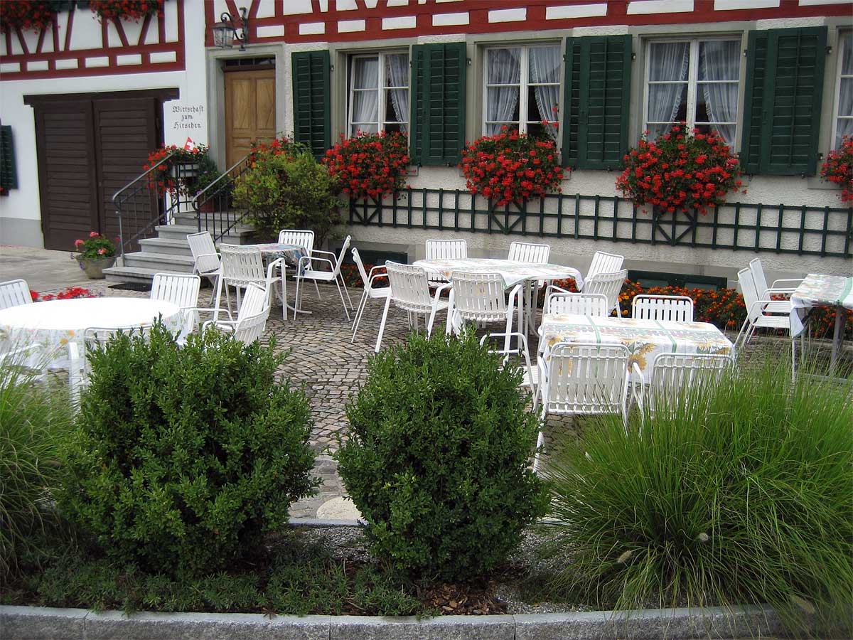 Und wenn es unter freiem Himmel sein darf: Die Gartenwirtschaft vor dem Hirschen bietet bis zu 30 Sitzplätze – perfekt auch für durstige Wanderer und hungrige Velofahrer.